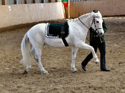 Schön zu erkennen ist auf diesem Bild die aktive Hinterhand. Der spanische Schritt soll sowohl taktmäßig, als auch ausdruckstark sein.